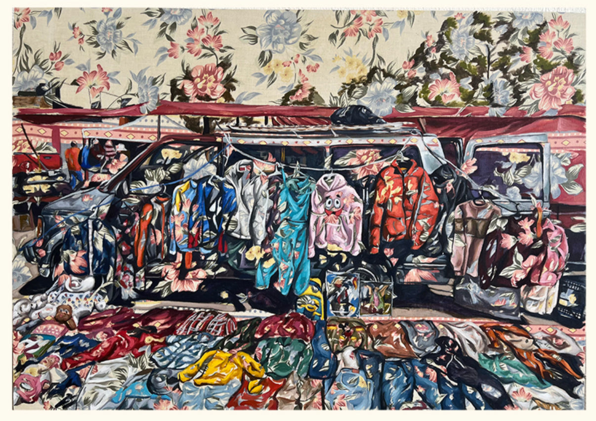 óleo sobre tela recuperada de tianguis (mantel)